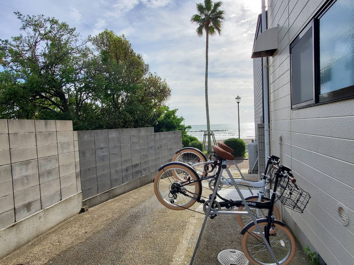 アクティビティ ※ご自由にお使いください自転車2台、自転車スタンド(レーススタンド)最大5台まで可能、サーフボードスタンド/ウォシャーバケツ、シャワーホースリールなど
